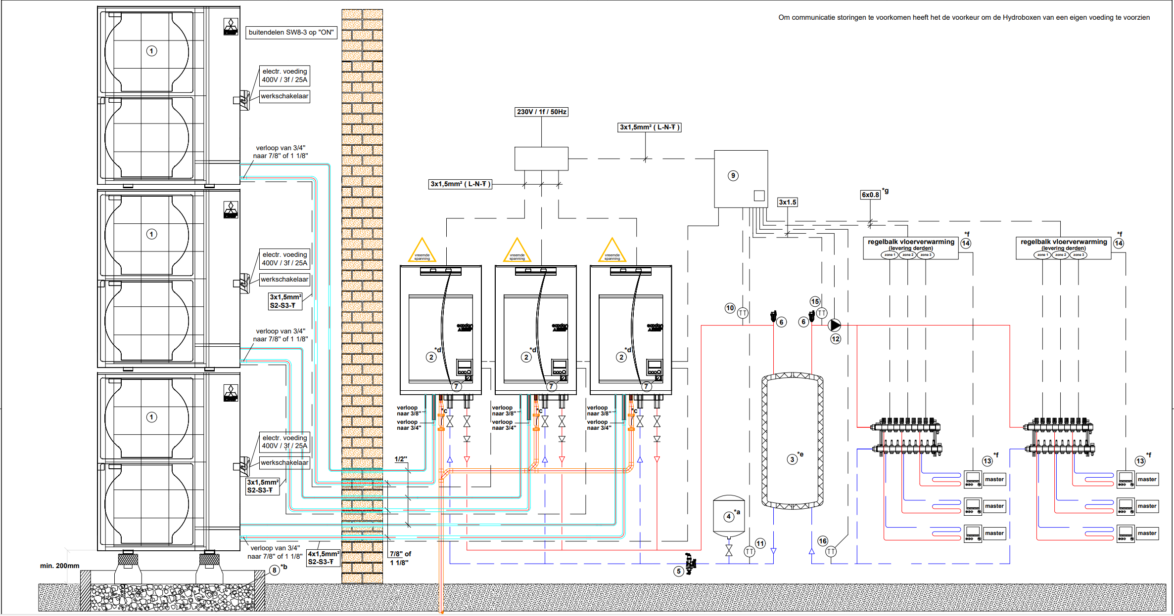 - Er kunnen maximaal 6 Ecodan units in cascade opgesteld worden.