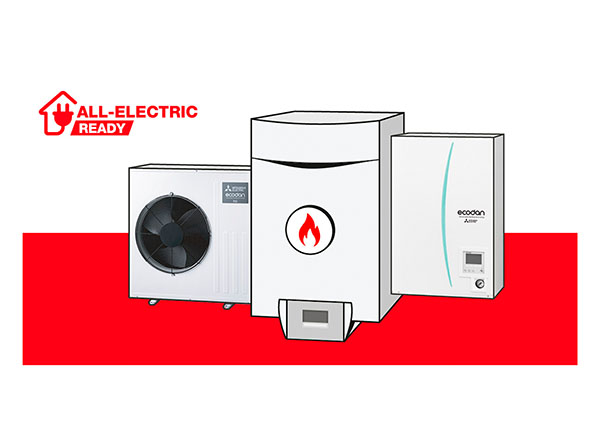 Dat maakt All-Electric Ready een echt duurzame oplossing voor verwarming in bestaande woningen en utiliteitsbouw. Maar wat nu als je gasgestookte ketel nog prima voldoet? Ook dan kan je volgens Schoonhoven gelijk gebruik maken van de voordelen. “Ecodan lucht-waterwarmtepompen werken samen met vrijwel alle merken cv-ketels in de markt. Daarbij zijn er diverse mogelijkheden voor een efficiënte en gebalanceerde regeling van ketel en warmtepomp.”