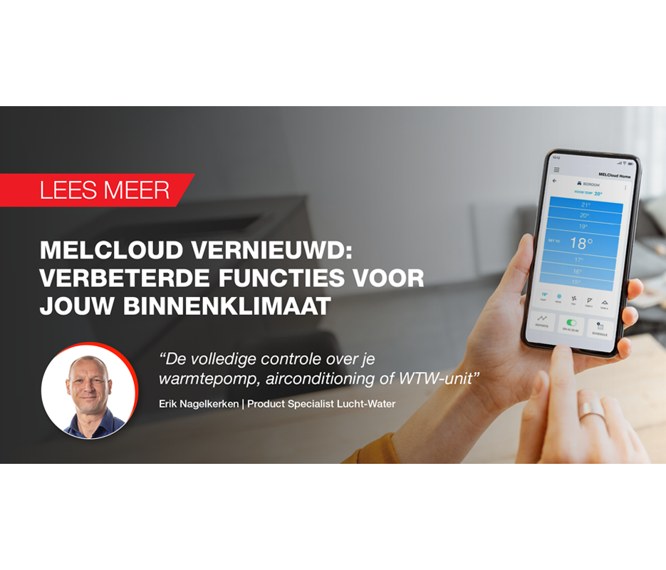 De meeste klanten kennen MELCloud Home al. De software-update gaat gepaard n een aantal verbeteringen. Zo gaat de reactietijd er flink op vooruit. “Voorheen stelde je bijvoorbeeld de airco in, waarna het een poosje duurde voor dat het systeem je instellingen overnam. Die reactiesnelheid ligt nu hoger.”