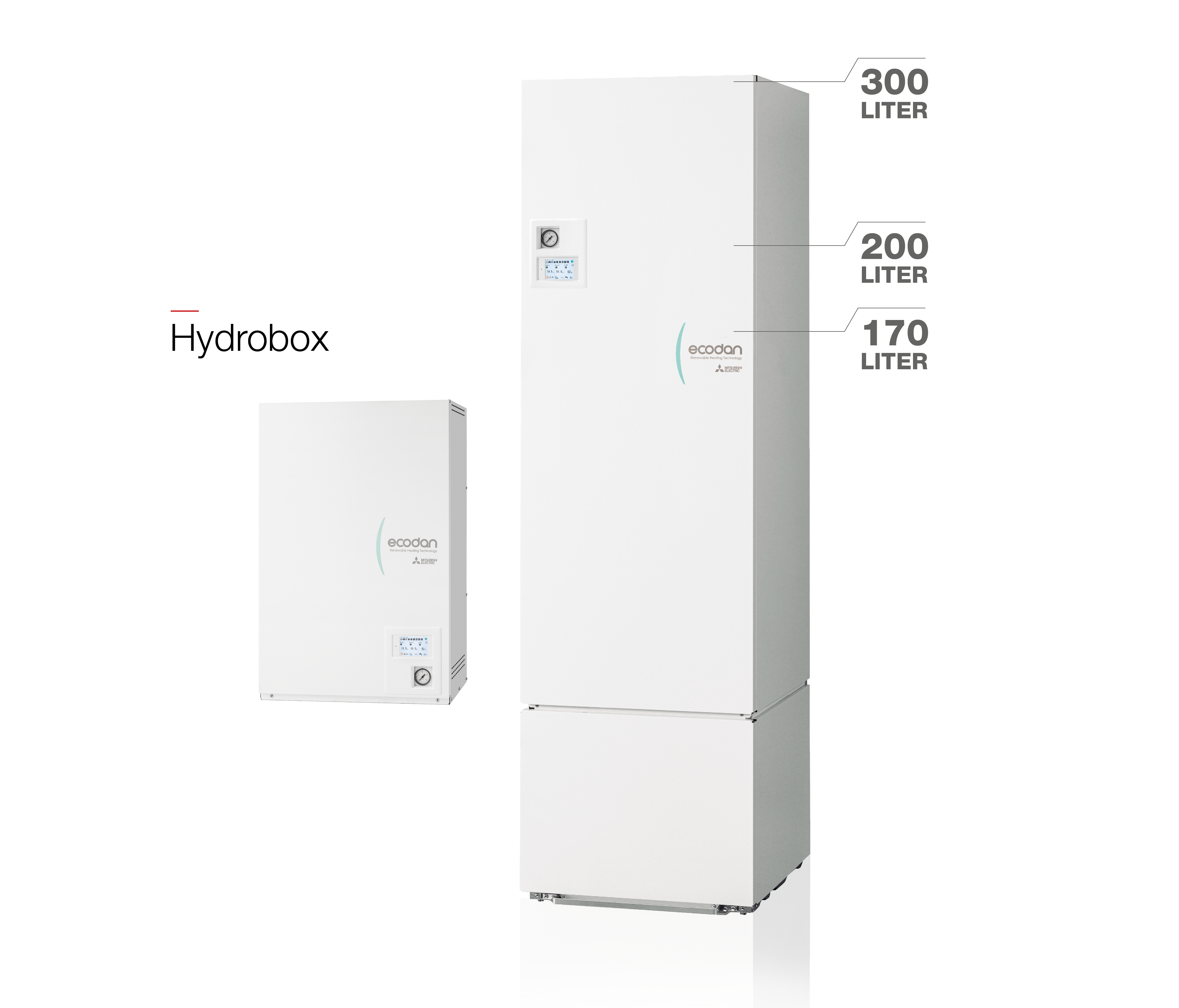 De Hydrobox is een compact lucht-water warmtepompsysteem dat weinig ruimte inneemt en eenvoudig te combineren is met externe boilers.