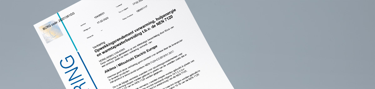 Voor de NTA8800 verklaringen van de SUZ-SWM60, SUZ-SWM80 en PUHZ-SW75 zijn verrekende verklaringen opgesteld vanuit de NEN7120. Dit om een invulling te geven aan deze overgangsperiode. Aangezien de NTA8800 op andere meetpunten beoordeeld wordt is ook de uitkomst anders.