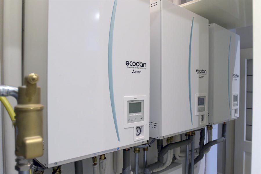 We spreken van een cascadesysteem wanneer er meerdere Ecodan warmtepompen aan elkaar gekoppeld zijn. Bijvoorbeeld om te kunnen voldoen aan een grote warmtevraag. Met behulp van een 'masterregelaar' wordt ervoor gezorgd dat de units optimaal samenwerken.