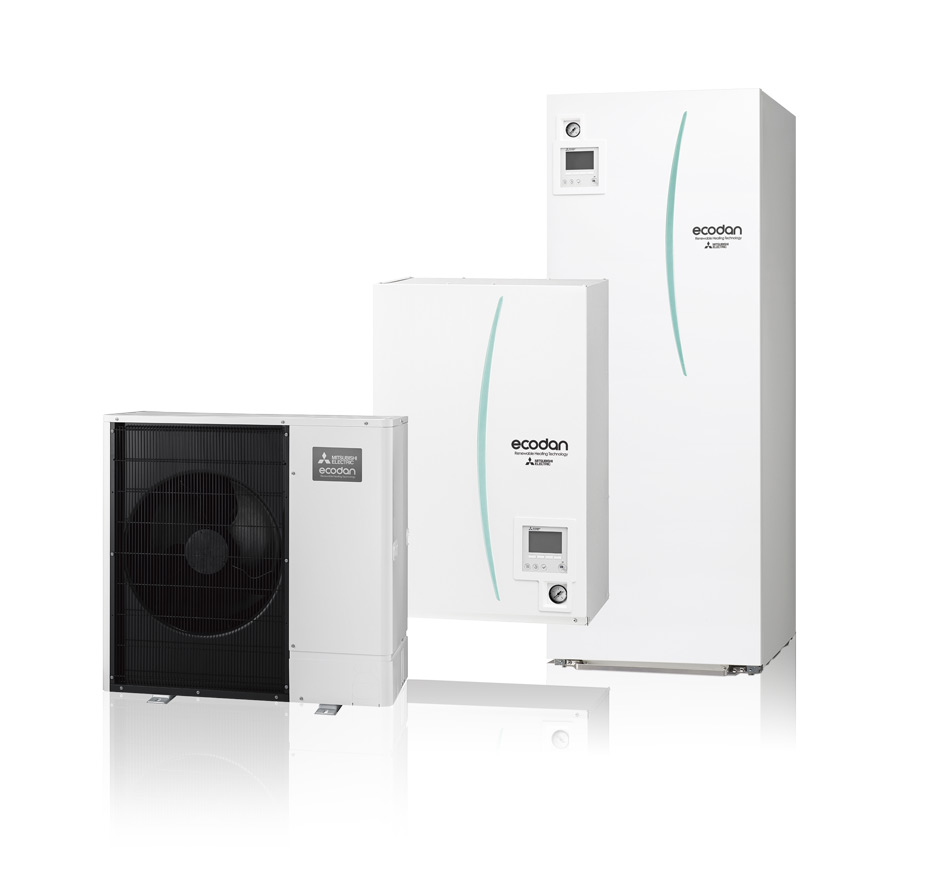De Ecodan-serie warmtepompen bestaat uit diverse all-electric modellen. Alle modellen kunnen worden uitgevoerd als monovalent of hybride (en all-electric ready). De belangrijkste varianten zijn de Ecodan Compact (met geïntegreerde 200L-boiler), Ecodan Comfort (te combineren met verschillende maten (zonne)boilers), en Ecodan Flexibel (open source-lijn voor maatwerkconfiguratie). Hiernaast bestaan nog het Ecodan CAHV-model (45 kW lucht-water warmtepomp / 70ºC warm water) en het CRHV-model (60 kW water-water warmtepomp) die energie onttrekt aan de bodem, uit grondwater of bijvoorbeeld aan een naastgelegen rivier. Door de relatief hoge stabiliteit van de temperatuur van de bron kan er het gehele jaar door een maximale efficiency worden gegarandeerd.