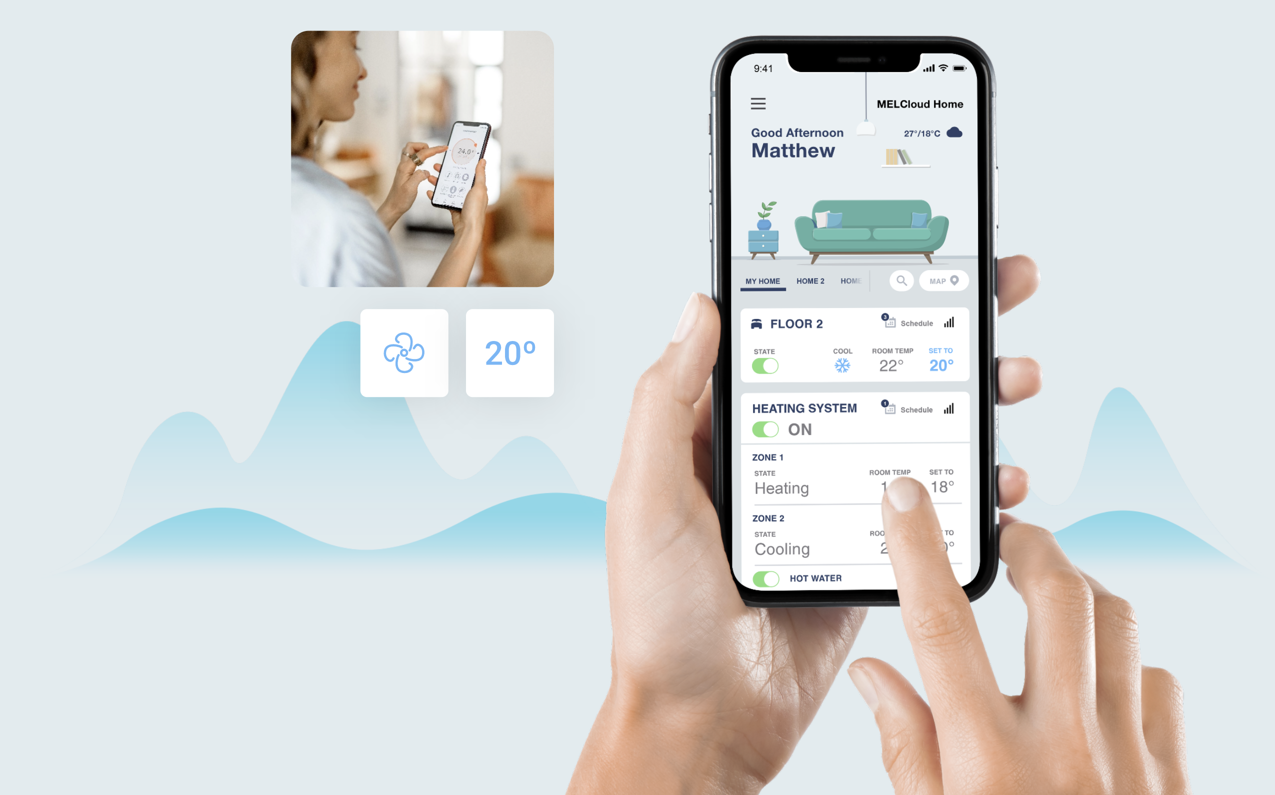 Met MELCloud Home bied je jouw klant één centrale, gebruiksvriendelijke oplossing voor het beheren van het binnenklimaat, zowel thuis als op afstand.