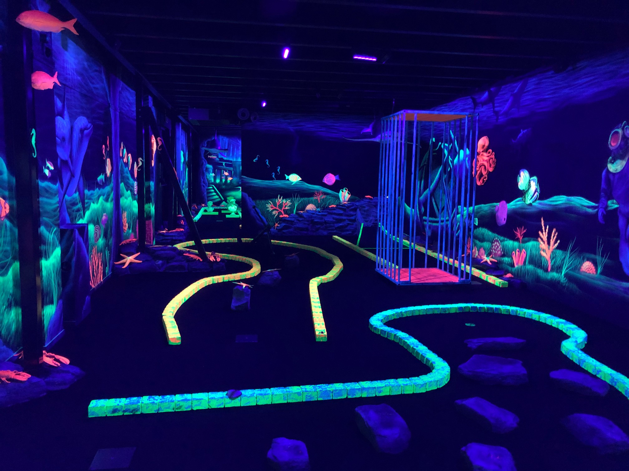 Vergeet het ouderwetse simpele potje minigolfen. Glow in the Dark minigolf is een kleurrijk avontuur van achttien verschillende holes in vier schitterend uitgewerkte thematische omgevingen: Atlantis, Piraten, Tropisch en Antarctica. In deze kunstige decors was alles perfect, behalve de temperatuur. Door het ontbreken van enige klimaatinstallatie was het ’s winters te koud en ’s zomers veel te warm. Gewoon een aantal wand-units op de muur schroeven zou echter de magie te veel verstoren. Daarom bedacht Koelplan iets anders.