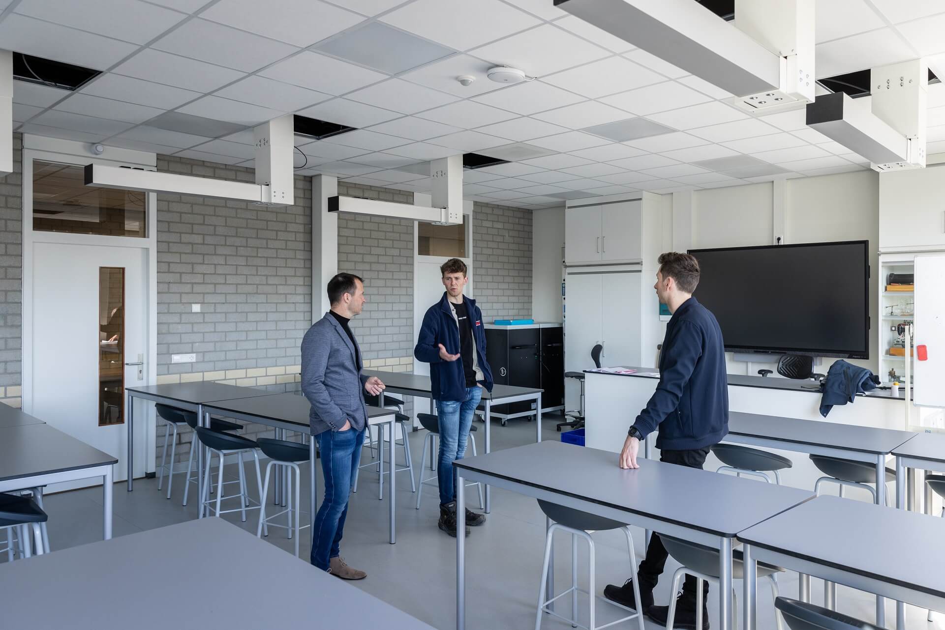 Bij dat moderne onderwijs past ook een gezond binnenmilieu. Toen de ventilatie en het klimaat in de nieuwbouw en het gerenoveerde schoolpand ter sprake kwamen, benaderde Marku Bouw en Dion Vastgoed Support hiervoor Engberink Technische Installaties. Al in een vroeg stadium ging het bedrijf met TIZ Klimaat- & koudetechniek om tafel om te zoeken naar een oplossing die op technisch en financieel vlak uit kwam. Hierin zijn veel verschillende concepten en configuraties doorgerekend. Uiteindelijk bleek pas de 13e aanbieding in het gehele plaatje te passen. Het werd het Frisse Scholen concept waar TIZ Klimaat- & koudetechniek, Engberink Technische Installaties en Alklima hun schouders onder zetten. Het concept omvat voor klaslokalen en gymzalen een aparte oplossing.