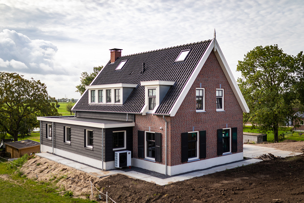 Hol Installatietechniek was bij de bouw van de nieuwe dijkwoning niet alleen verantwoordelijk voor de installatie van de warmtepomp, maar verzorgde ook de sanitaire installaties. Toes: “De nieuwe woning kwam in de plaats van een oude woning die bij een eerdere dijkverzwaring moest worden afgebroken. We wisten dus hoe de gezinssamenstelling was van de toekomstige bewoners. Die voorkennis hielp ons bij de keuze van de warmtepomp. Het gezin dat de woning zou betrekken, had meerdere kinderen en wilde niet inleveren op comfort. We besloten daarom een Mitsubishi Electric warmtepompsysteem te kiezen, met een buffervat van 40 liter en een losse tapwaterboiler van 500 liter. De warmtepomp heeft een vermogen van 8 kW en kan dus een woning voor een groter gezin van een comfortabel binnenklimaat én voldoende warm tapwater voorzien. Een ander voordeel van deze warmtepomp is dat hij naast verwarmen ook kan koelen en ook bij lage buitentemperaturen zijn vermogen behoudt.”