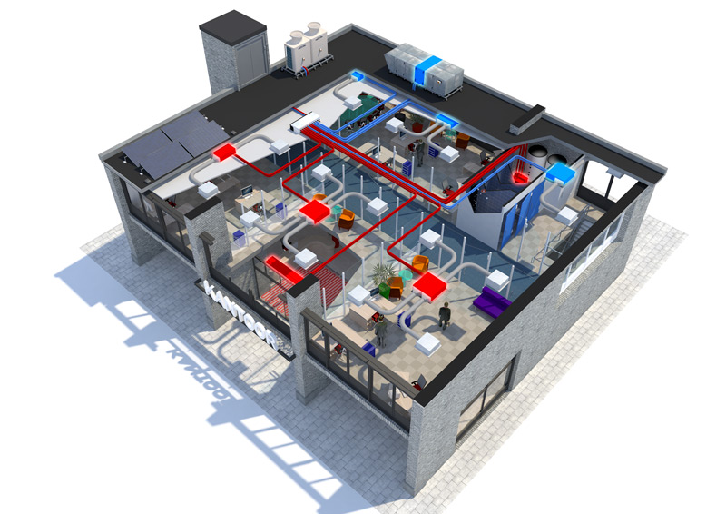 Na een pittige workout in de fitnessschool douchen met water dat is verwarmd met behulp van warmte uit de ruimte. Afwassen in een restaurant met warmte die door de gasten is afgestaan. Door slim te ontwerpen en door de huidige technische mogelijkheden van het City Multi (W)R2-systeem optimaal te benutten, kunnen de verschillende koude- en warme-energiestromen binnen een pand nuttig worden ingezet op de plaats waar jij dat nodig vindt. Door te spelen met energie kan een optimaal systeemrendement worden behaald voor elke specifieke toepassing.